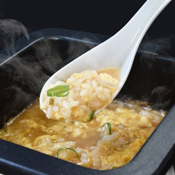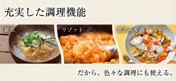 麺を食べ終わった後、そのまま米を投入しシメまで調理が可能にした。お茶碗1杯分の米が入り、鍋部分はこびりつきを防止するフッ素加工を施している。鍋は取り外し可能で丸洗いができるようにした。