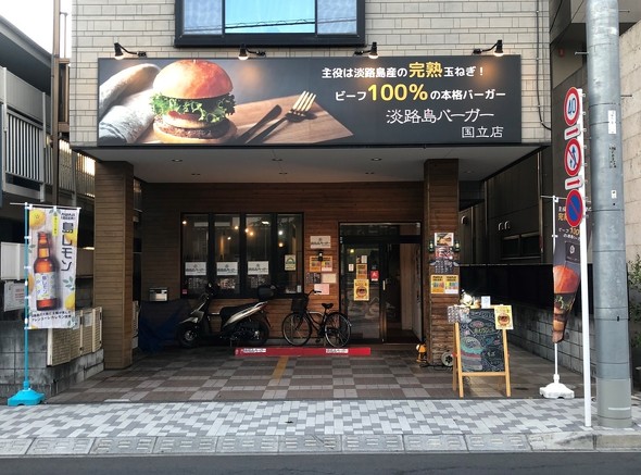 淡路島バーガーは淡路島産の「完熟たまねぎ」を使用。ビーフ100%のパティで、レタス、トマトなどの素材も国産にこだわる。駅前立地の店は少なく、住宅街に入った立地の店が多い。席数20席以下の小型店で、少人数で回して、テークアウトやデリバリーを狙っていく独特な戦略をとる。
