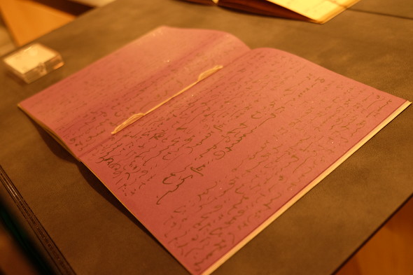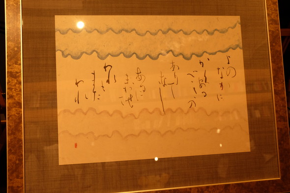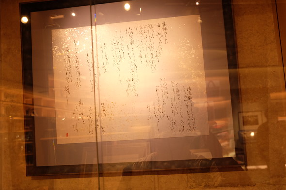 財前氏は、「文字は元来、手で書くものでした。読んで字のごとく、書物とは書カレタ物、書ヲ読ムと書いて読書です。そして書物・書籍を売っているのが書店です。今回は、現代の誰もが読むことのできる平仮名を主に、筆文字の可能性を追ってみました。時間をかけて文字を追い、そこにある言葉をかみしめ、筆線の表情もたのしむ。そのような『書』本来のありようを伝えたい」と話す。