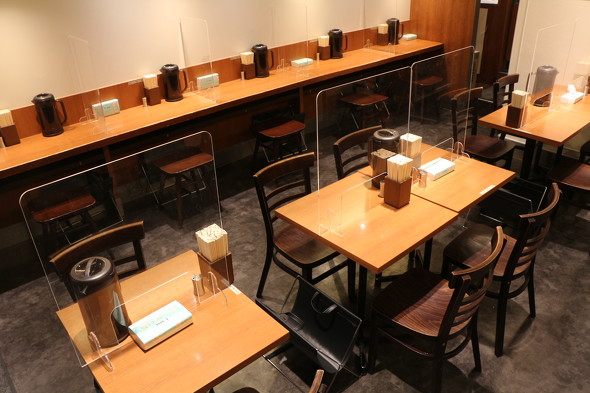 地方自治体から飲食店向けに発信されているガイダンスを順守しています。検温、消毒、ソーシャルディスタンスのほか、注文を券売機でするようにして、店員とお客さんの接触を減らす努力をしています。