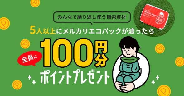 今回、エコパックの循環をさらに後押しするため、全国9カ所にあるメルカリステーションでの返却を可能とし、22年9月30日までの間、1つのエコパックを5人以上が利用した場合、利用者全員に100ポイントずつ付与する仕組みを新たに導入する。
