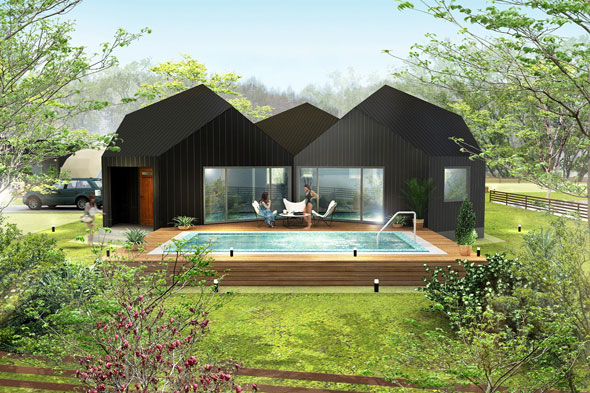 アウトドアヴィラは6角形を3つ合わせたような独特な形状で、室内にシングルベッドを4台配置。マットレスを使用すれば最大8人まで宿泊可能となる。専用のBBQスペース、キッチン、お風呂、トイレを完備し、ゆったりとしたプライベート空間を用意した。