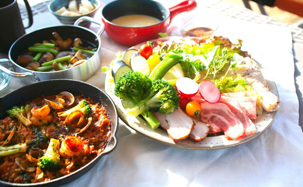 グランピング利用者向けの食事には、長年イタリアで修行を積んだシェフが創る本格的イタリアンのフルコース料理を2種類用意。東峰村産の新鮮な野菜をふんだんに使ったイタリアンBBQプランと、平戸焼の器で楽しむ「素材の旨味」を最大限に引き出した本格的イタリアンフルコースプランから選べるようにした。