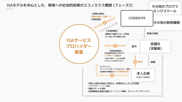 鶴田氏が長期的に目指すのは、国内でも法的な位置付けが明確になることと、ISAのプラットフォーム化だ。ISAを提供する事業体を用意し、CODEGYMというスクール事業と切り分ける。その上で、他の教育機関にもISAを提供する考えだ。