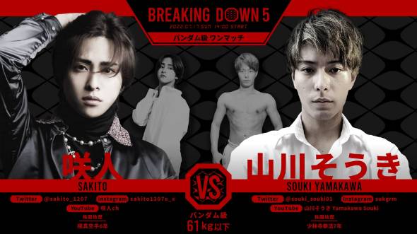 「1分1ラウンド」で最強を決める総合格闘技エンターテインメント「Breaking Down(ブレイキングダウン)」を運営するBreakingDown(東京都渋谷区)は、7月17日に開催する「喧嘩道 presents BreakingDown5』全21試合中の6試合の対戦カードを発表した。話題の選手を登場させることによって、視聴者の獲得を目指す。