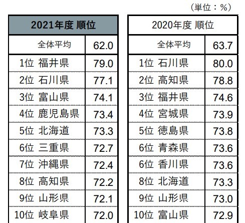 観光に関する調査や研究を行う「じゃらんリサーチセンター」(運営:リクルート)は、「じゃらん宿泊旅行調査2022」の結果を発表した。地元ならではのおいしい食べ物が多い都道府県の1位は「福井県」だった。