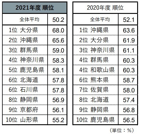 魅力的な宿泊施設が多い都道府県を聞くと、1位は「大分県」だった。大分県が1位になるのは2年ぶりで、11回目のランクインとなった。2位は「沖縄県」、3位は「群馬県」という結果に。