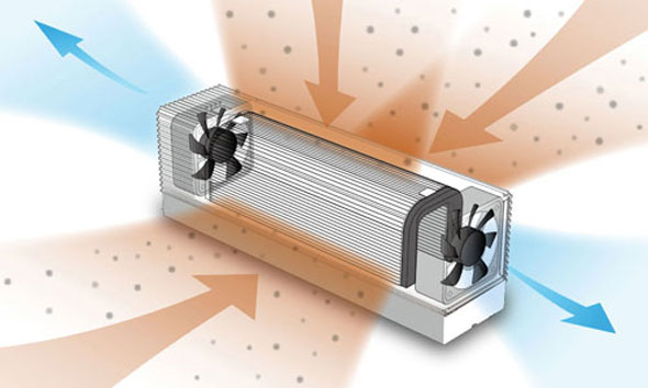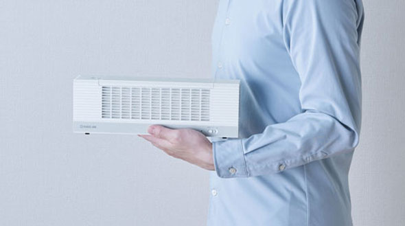 一般的な不織布マスクは3マイクロメートル以上の粒子を防ぐのに対し、同製品は静電HEPAフィルターを採用。0.3マイクロメートルの微粒子を99.97%除去できるという。微粒子の除去率はフィルターの性能であり、同製品でどの程度除去できるかは設置場所などの諸条件により異なる。