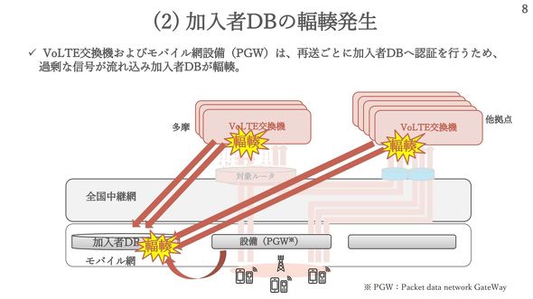 全国のVoLTE交換機には負荷を分散させるロードバランシングの仕組みがある。多摩以外のネットワークセンターにあるVoLTE交換機からの音声通話要求も流入していたが、通話処理を引き渡す要求に対して(接続はできているのに)応答がないため再送要求が繰り返され、多摩とそれ以外の地域にあるVoLTE交換機の間でも輻輳が発生していたという。