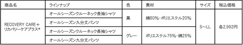 紳士服大手のAOKIは8月1日、一般医療機器の届け出をした疲労回復衣料「RECOVERY CARE+(リカバリーケアプラス)」のオールシーズン仕様の予約販売を開始した。6月に五分袖シャツと七分丈スウェットパンツを限定発売したところ、発売から1週間で完売したといい、このほど通年で着用できる長袖・九分丈パンツを展開し、需要の取り込みを図る。