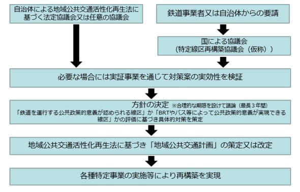 提言では国が主体となり、鉄道事業者や自治体からの要請で「特定線区再構築協議会(仮称)」を設置することを提案している(出典:国土交通省、地域の将来と利用者の視点に立ったローカル鉄道の在り方に関する提言)