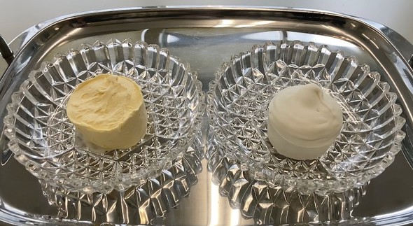 一般的な冷えたアイスクリームは、時間が経過すると水分と脂分が分離して溶けてしまう。一方、同社の独自配合によって、水分と油分の分離を防ぎ、溶けにくくした。