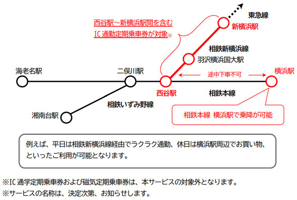 相鉄は「例えば、平日は相鉄新横浜線経由でラクラク通勤、休日は横浜駅周辺でお買い物、といったご利用が可能となります」と説明している。
