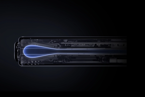 閉じるとヒンジが水滴のような形になり、折りたたむと隙間が出ない「水滴型ヒンジ」を採用して薄さを実現し、部品の数を28%減らすことで、重さも既存の折りたたみスマートフォンの中では最も軽い262グラムになった。