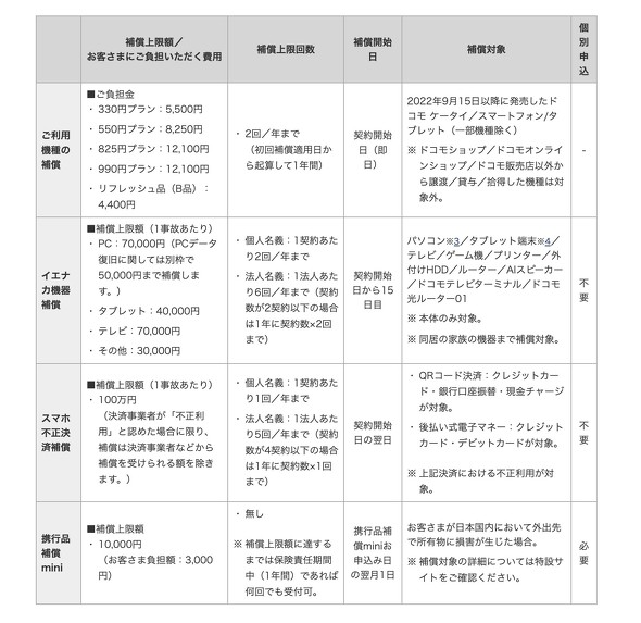 ドコモの携帯電話保有者でなくても、dアカウントを保有しているユーザーならば加入できる。ただし機種の補償は、ドコモで購入した機器に限る。機種の補償以外の引受幹事保険会社は東京海上日動火災保険となっている。