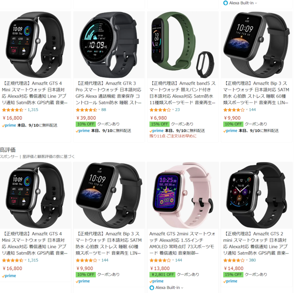 しかしスマートウォッチ市場は、低価格ブランドの乱立により、すでに値崩れも始まっている。例えば、先ほどのグラフにある、AMAZFITは1万円以下から購入できる低価格スマートウォッチやスマートバンドを展開するブランドだ。