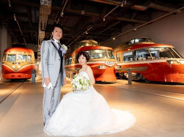 小田急電鉄は9月14日、自社で運営するロマンスカーミュージアム(神奈川県海老名市)において、歴代ロマンスカーの前で挙式を行えるプランの受付を開始すると発表した。