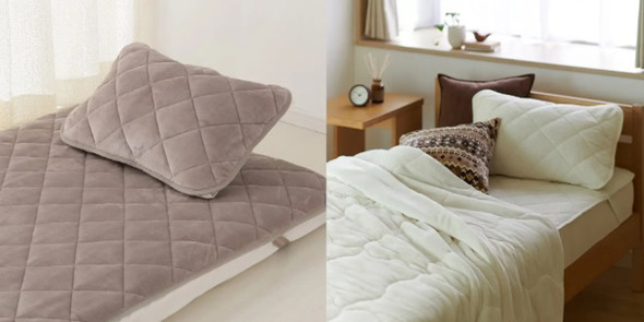 例えば、秋・冬・春の3シーズン使える「リバーシブル寝具シリーズ」を展開する。このシリーズは、秋・冬においては肌触りが暖かく柔らかなフランネル起毛面を、初秋や春はさらっとしたパイル面をそれぞれ使い分けることができるのが特徴だ。「リバーシブル敷パッド」は3278円(シングル)、「リバーシブルわた入り毛布」は4378円(シングル)、「リバーシブルまくらパッド」は877円とした。