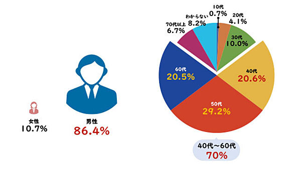 先ほどの交運労協の調査によれば、カスハラを行う利用者の傾向として、男性が86.4%で、加害者の7割が40代以上だった。同様の傾向は、他の調査でも明らかになっている。