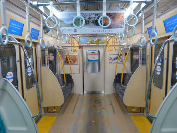 50円運賃と同時に打ち出したのが、子育て応援車の導入だ。3月12日から順次、同社が保有する通勤車両(一部除く)の3号車(窓ガラス、乗降扉、貫通扉)に計24枚のステッカーを掲出した。ベビーカーなどを安心して利用してもらいたいとアピールするのが狙いだ。現在、同社が保有する通勤車両の127編成中、105編成に子育て応援車がある(9月15日時点)。なお、都営地下鉄で「子育て応援スペース」を設置した車両を運行するなど、同様の動きは他でも拡大している。