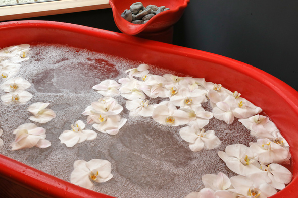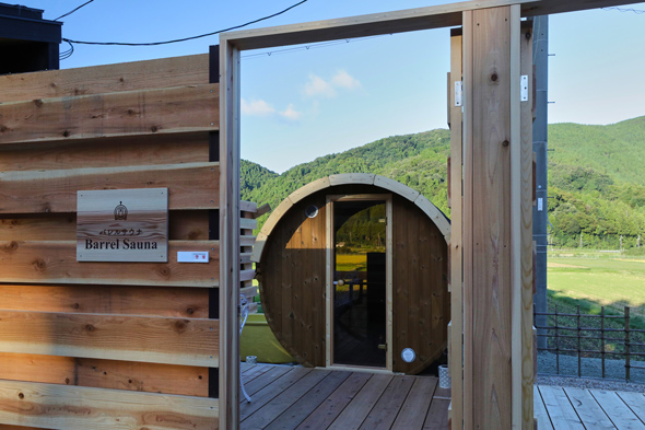 全4室ある貸切風呂は、滋賀県産「信楽焼」の風呂釜を配置した完全プライベート空間で、テラスからの眺望を楽しめる。バレル式の本格派サウナが1戸あり、1時間単位で貸切利用が可能となっている。
