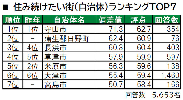 大東建託は滋賀県に住む成人を対象に、居住満足度調査を実施した。その結果、「住み続けたい街(自治体)ランキング」の1位は「守山市」、2位は「日野町」、3位は「長浜市」だった。