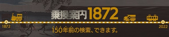 彼らが見ていたのは、鉄道開通150年を記念して公開した「乗換案内1872」の反響である。「150年前の検索、できます」のキャッチコピー通り、1872年の鉄道開業時の運転区間・時刻・運賃で経路検索できるサービスだ。