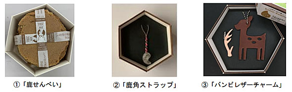 自販機では鹿せんべい(500円、10枚)のほかに、奈良にまつわる2つの商品「鹿角ストラップ」「バンビレザーチャーム」(いずれも1000円)を販売。鹿せんべいのパッケージには、捨てられるはずだったお米を混ぜた紙素材を使った紙箱を使用しており、フードロス削減にも力を入れているという。
