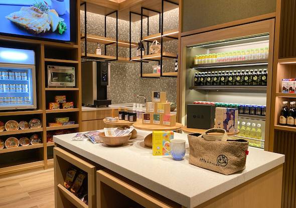 館内には、スナックや飲み物を24時間購入できるセルフサービス店舗「The Shop(ザ・ショップ)」も。ここにも京都の地ビールやおつまみが置かれており、家族や友人と部屋で気兼ねなく飲食するのもよさそうだ。