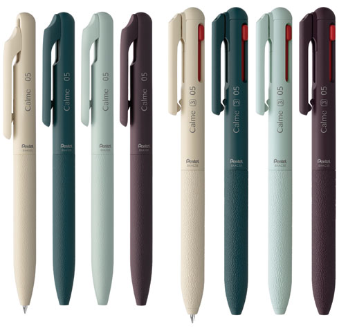 Calmeの新色追加は今回が初めて。生活の道具として尊敬できる存在か? という観点から検討して色を決めた。限定色の空翡翠と栗紫という色名は、ぺんてるがつくった造語である。
