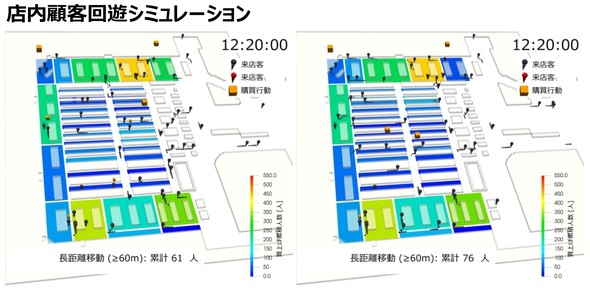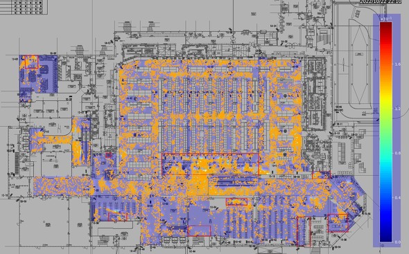AIカメラにより、顧客が特に集まっているエリアを時間帯別で把握できるようになった。具体的には、利用率の高い場所を赤色、低い場所を青色にして、グラデーションで色分けする「ヒートマップ」で可視化している。同社では、このようにして集めたデータをどのように活用しているのか。