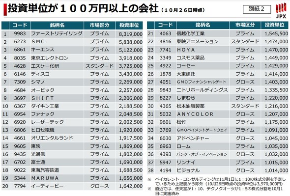 今回の告知では、ユニクロ運営会社のファーストリテイリングや、ディズニーランド運営会社のオリエンタルランド、Vtuber事務所運営会社のANYCOLORなど38社が名指しで投資単位が高い水準にとどまっている上場会社としてリスト化されており、これらの会社は対応を余儀なくされそうだ。