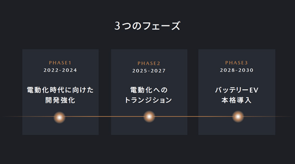 ということで、現在これがどう転ぶかは予断を許さない状況だ。マツダとしては本当に内燃機関中止が決まった場合に備えて、準備をしておかなくてはならない。そこで、30年時点でのBEV想定比率を従来の25%から「25〜40%」として上振れの可能性を見込むとともに、EV専用のスケーラブルアーキテクチャを前倒しにして計画に盛り込んだということである。