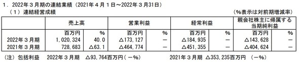 ANAホールディングスの22年3月期決算は、売り上げが1兆203億円。これは、コロナ禍が直撃した20年3月期と比較して40.0%の増だが、コロナ前と比較すると5割弱の水準にとどまる。営業利益も赤字となっており、数字上はまだまだ「復活」というには程遠い。