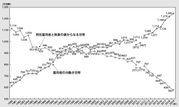 “失われた30年”の始まりとともにデフレ時代が到来し、生活者のライフスタイルも大きく変わった。大きな理由として、共働き世帯の増加が挙げられる。厚生労働省発表の「共働き等世帯数の年次推移」を見ても分かるように、94年に初めて共働き世帯が男性雇用者と専業主婦からなる世帯を超えて以降、年々共働き世帯は増加。07年には1000万世帯を突破し、今日では共働き世帯が「当たり前」の世帯像として定着しているといえよう。