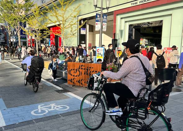 ベンチの配置により、にぎわいの創出のみならず、道路環境も向上した。以前は、歩行者道と自動車道が分かれているにもかかわらず、それを守らない人が多かった。しかし、仕切り部分にベンチを設置してから道路サインを守る人が増えたという。