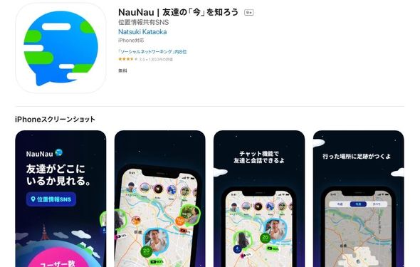 1位の「NauNau」は、22歳の大学生が趣味で作ったという友達同士で位置情報を共有できるアプリ。「人の居場所がわかって集合場所を決めやすい」「Zenly(ゼンリー)がもうすぐ終わるから次はNauNau」といった意見が寄せられた。Z世代に人気の位置情報共有アプリ「Zenly」が2023年2月に終了してしまうことを受け、その代わりとなるアプリとしても注目を集めている。