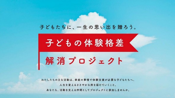 本プロジェクトは、経済的困難や不登校などを理由にさまざまな「体験」機会に乏しい状況にある子どもたちに、自然・文化・社会的体験を提供することで、「自分らしく生きる力」を得ることができる社会の実現を目指し、活動するという。