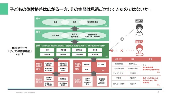 これらの体験の不足は子どもの学力獲得、非認知能力獲得の機会の不足を意味し、将来的な学歴、年収といった格差の固定化にもつながると、リディラバの安部代表は指摘する。