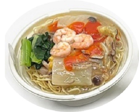 「南国酒家監修 海老と野菜の酸辣湯麺」(648円)は、酢の酸味、辣油、コショウの辛味が効いた酸っぱくてからい酸辣湯麺だ。食感を楽しめるよう大きめにカットした野菜を使用している。