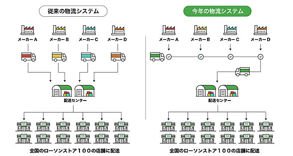 また、海外からの輸送も、国内の物流と同じように見直した。従来は海外メーカーがそれぞれコンテナに積み込んで、それを船で運んでいた。しかし、昨年からはローソンストア100が手配したコンテナにすべて集めて、それを日本に。結果、輸送費のコストを抑えられたという。