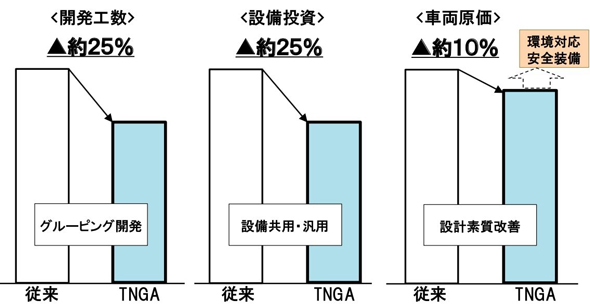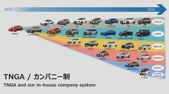 料理に例えれば、最高のホワイトソースをつくってしまえば、それをベースにグラタンもシチューもドリアもクリームコロッケもつくれる。ホワイトソースのレベルが上がれば、全ての料理のレベルが上がる。こういう共通部分を見つけ出して、全てのクルマのレベルを上げつつ、全体としてコストダウンを図る。われわれが頻繁に耳にする「TNGA(トヨタ・ニュー・グローバル・アーキテクチャ」とはつまりそういうものだ。