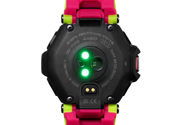 GBD-H2000は、幅広いスポーツシーンに役立つGPS機能と6つのセンサーを搭載しながら、従来モデル「GBD-H1000」と比較して質量を38%軽量化。GPSアンテナをケースに内蔵することでの小型化し、裏蓋にカーボン繊維強化樹脂を採用するなどの改良により、快適な着け心地を実現したという。