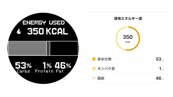 トレーニング分析機能には、フィットネス、スポーツ、健康領域におけるパーソナライズされたアドバイス機能を50年近く研究開発してきたポラール・エレクトロ社のアルゴリズムを活用。心肺にかかった負荷の計測や三大栄養素(炭水化物、タンパク質、脂質)別の消費エネルギー分析、睡眠計測などが可能となっている。