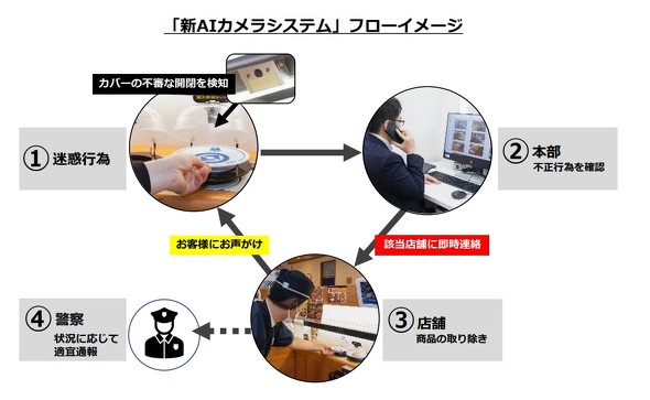迷惑動画が外食チェーン全体で問題視されていることを受けての対応だ。各座席のレーンには、すし皿をカウントする「AIカメラ」が設置されており、そのカメラがレーン上の不審な動きを察知する仕組みだ。迷惑動画が社会問題化してから約1カ月というスピードで全店導入までこぎつけた。