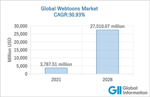 調査によると、ウェブトゥーンの世界市場規模は2021年時点で約4951億円(36億7347万米ドル)だった(1ドル=134.78円)。2028年には約3兆5330億円に到達するとの予測が発表されており、今後も右肩上がりの成長が期待できる市場だといえそうだ。