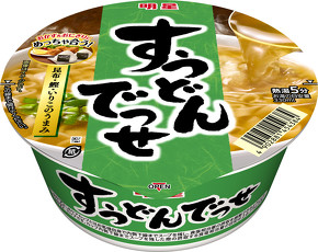 「具だけ」が話題になる一方で、「具なし」が受ける商品もある。明星食品が2022年9月に発売したカップ麺「明星 すうどんでっせ」「かけそばでっせ」「かけラーでっせ 醤油ラーメン」だ。
