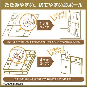 使用する段ボールも廃棄のしやすさを意識し、ひもを使わず3枚まとめてロックした状態で廃棄できる作りになっている。