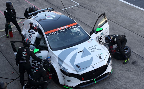CNFを採用したGR86やスバルBRZ、バイオディーゼルのMAZDA3などはすでに昨シーズンから走行しているマシンばかりであり、目立ったアップデートは施されていないように見える。昨年の最終戦でMAZDA2に代わってデビューしたMAZDA3は、前戦で見つかった問題点を改善しているという。