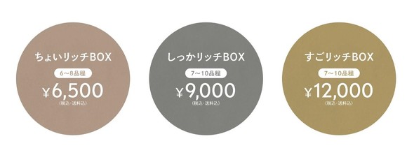 ラクリッチは、バイヤーがチョイスした使いやすい少量サイズの商品を6〜10品ほどのセットにして、毎月冷凍で配送するサービス。利用者にはメニューの全てを公開せず、一部商品を公開することで、届くまでのワクワク感を演出する。コースは「ちょいリッチBOX」(6500円)、「しっかリッチBOX」(9000円)、「すごリッチBOX」(1万2000円)の3種類を用意した。